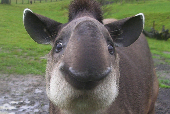 Tapirs are found throughout Central and South America and Asia, mostly they live in rain forests and are quite adept at swimming. The exception is the mountain tapir, who, true to its name, lives in more mountainous habitats. Due to habitat loss all four species of tapirs are endangered.