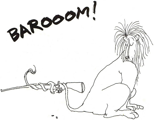 And here all I can think of is Shel Silverstein’s Lafcadio: The Lion Who Shot Back.